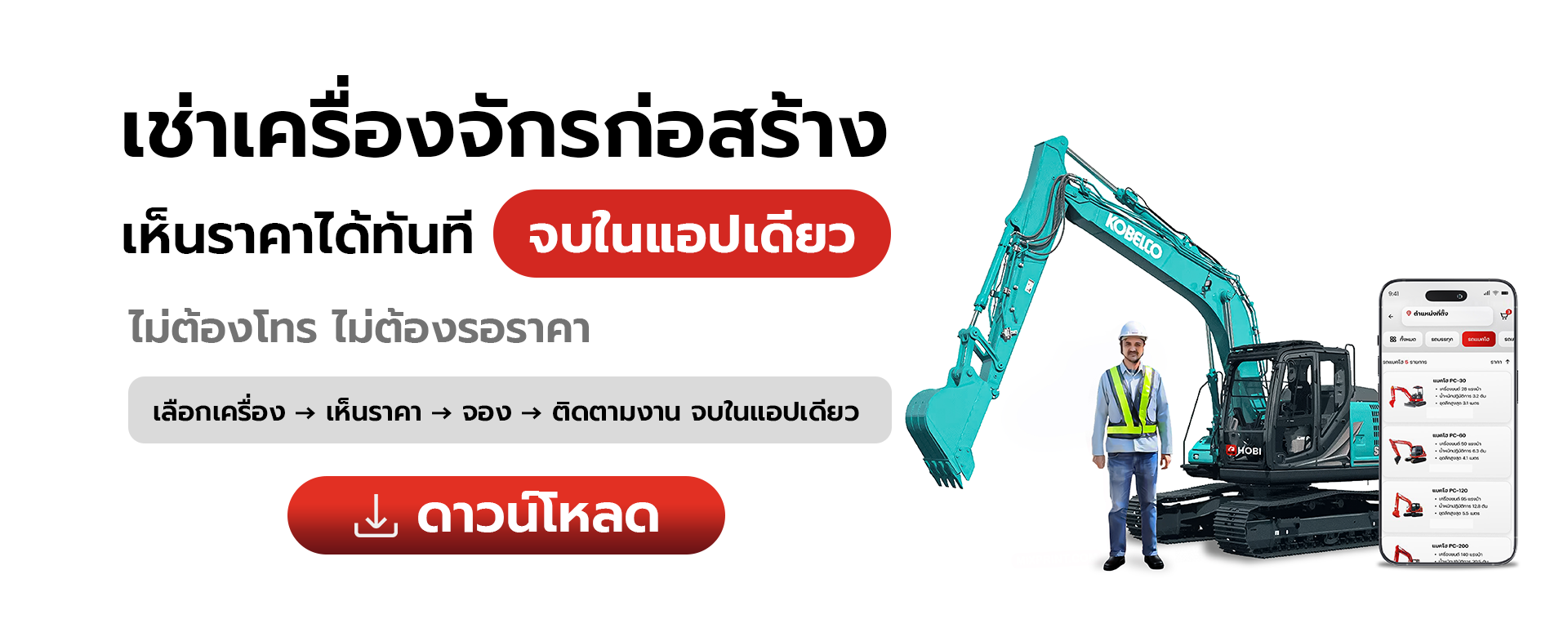 เงื่อนไขการเช่าเครื่องจักรและรถใช้งาน เป็นไปตามมาตรฐานของ HOBI และข้อตกลงที่กำหนด
